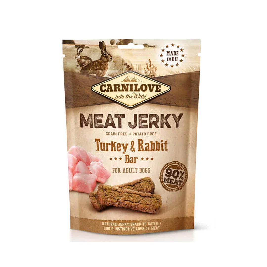 A “Carnilove Jerky Snack” egy gabona és burgonyamentes jutalomfalat 90% minőségi hústartalommal kutyák részére. Nem tartalmaz hozzáadott cukrot sem színezéket.